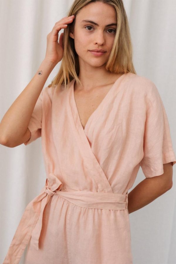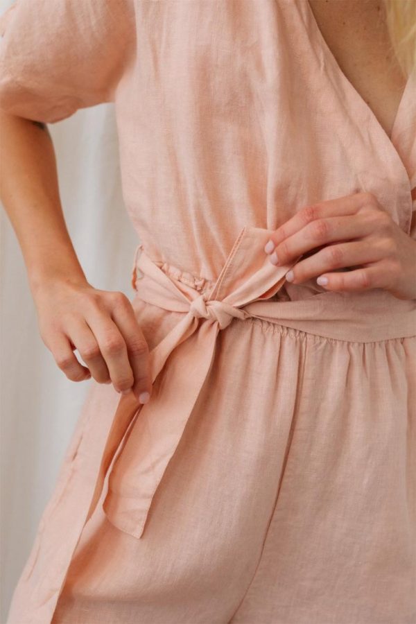 Makeway jumpsuits, spring and summer belong to linen playsuits! The Novaya takes inspiration from the Japanese kimono for its clean neckline, sleeve design and matching belt.
