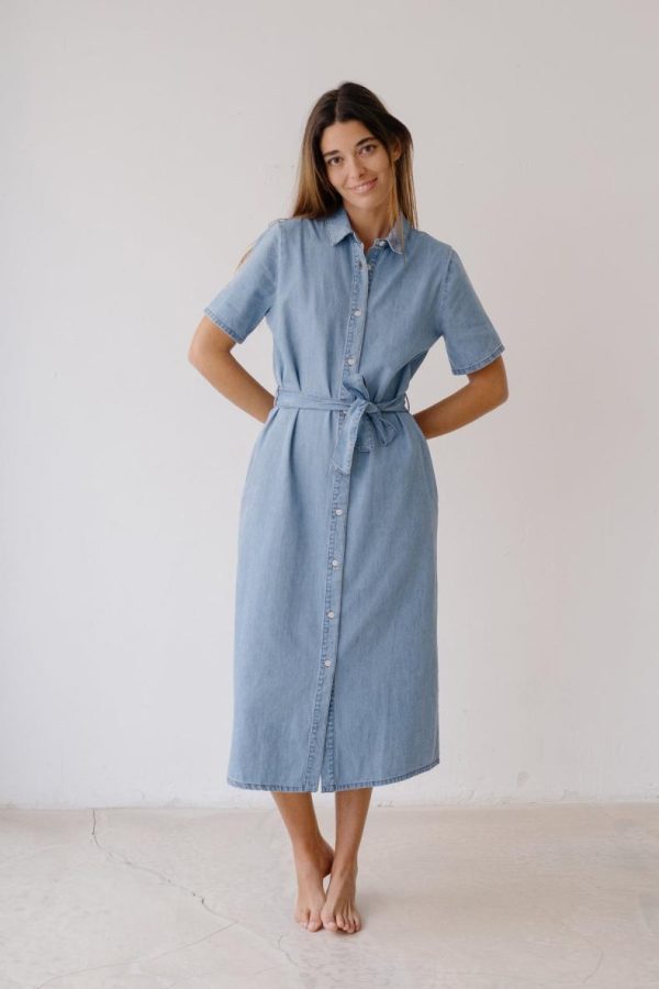 Our famous Ocean Denim has now been crafted into the most sustainable and stylish dress: The Arapaoa, which comes with a matching belt and handy side pockets.